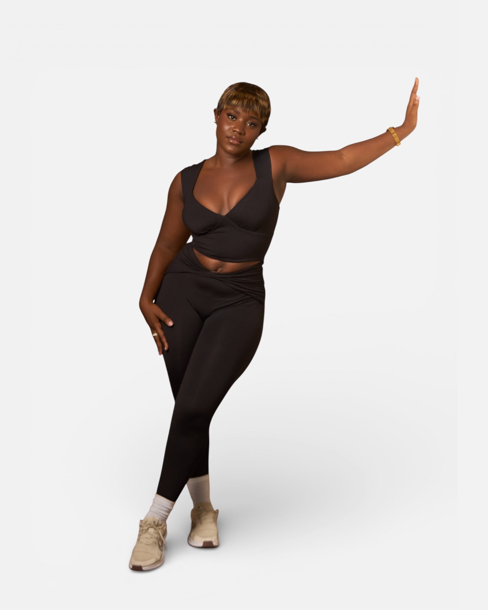 The ARIA SET is your go-to for errands, lounging, or casual outings. The matching top and leggings are comfortable, stylish, and effortless — perfect for all-day wear.