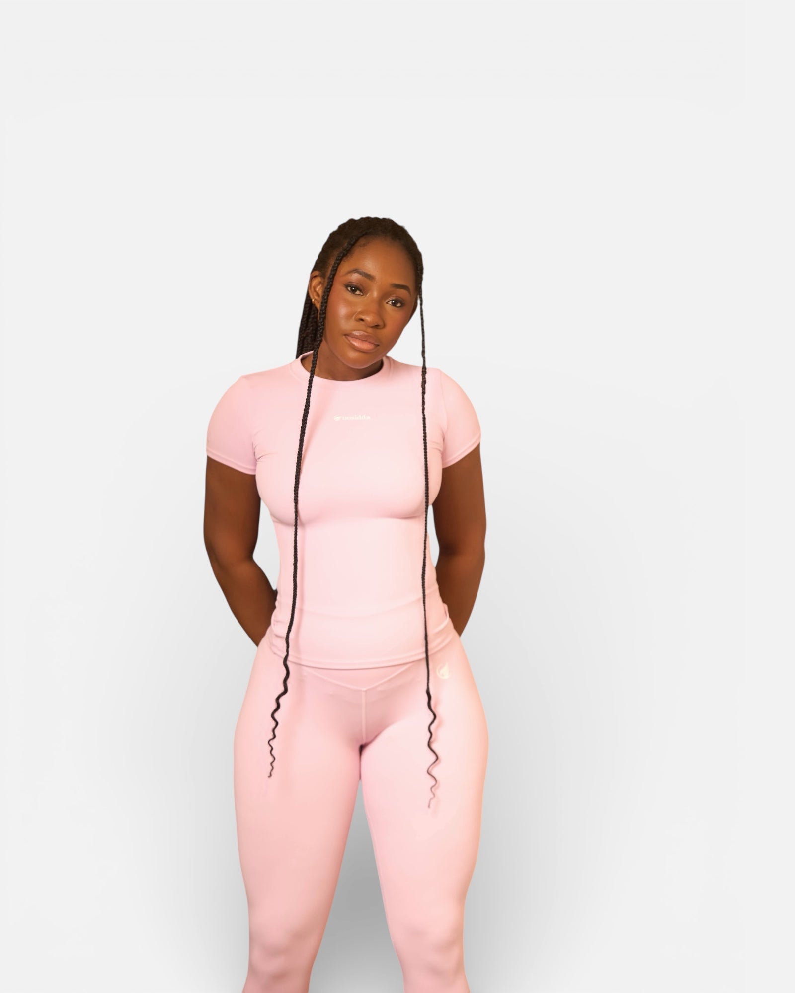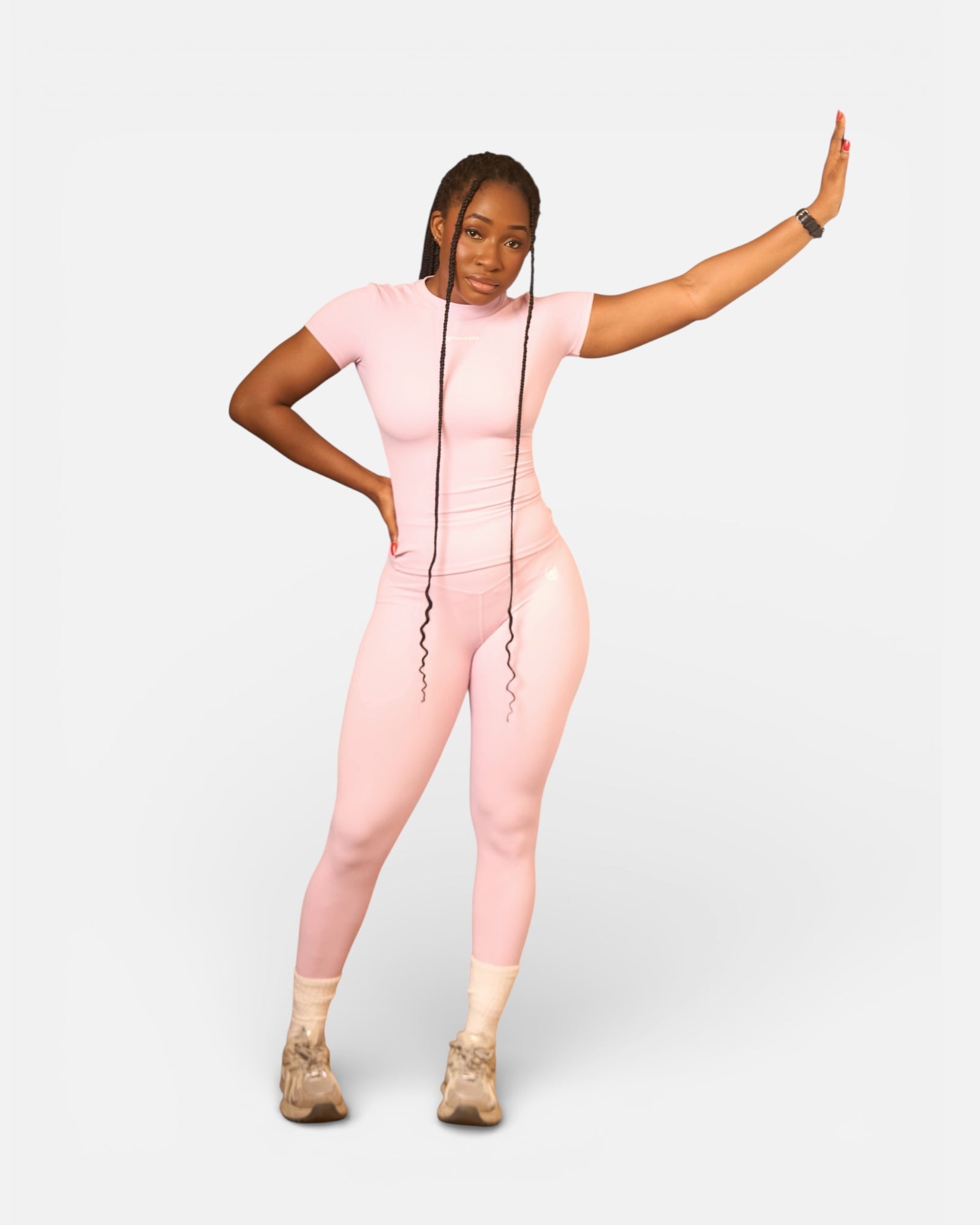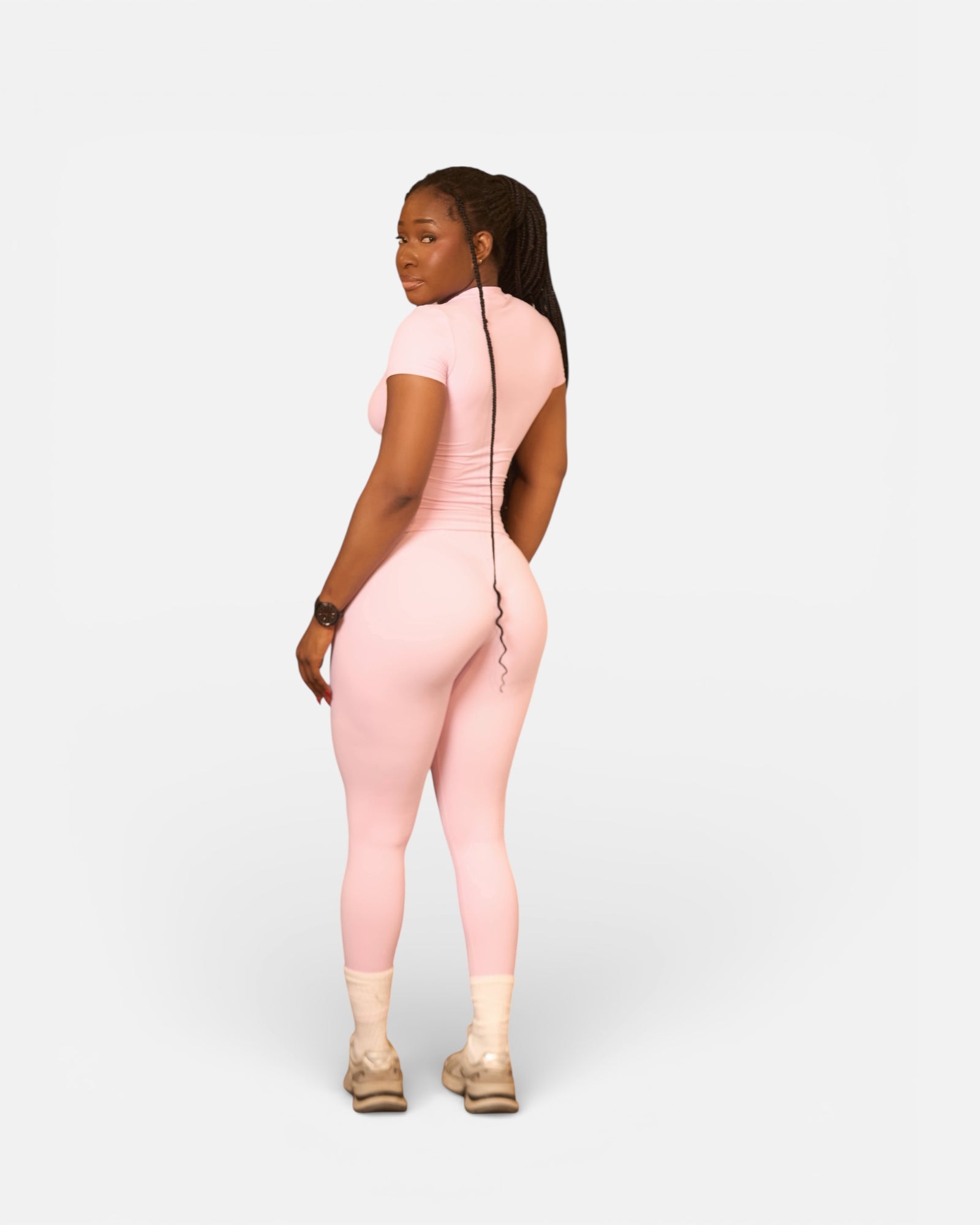 Feel confident and cute while you train in this baby pink top and leggings duo. Designed for full-range movement and everyday gym performance.